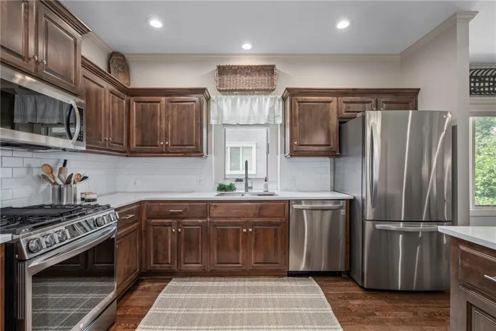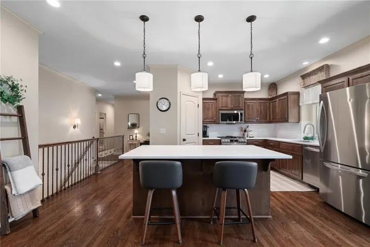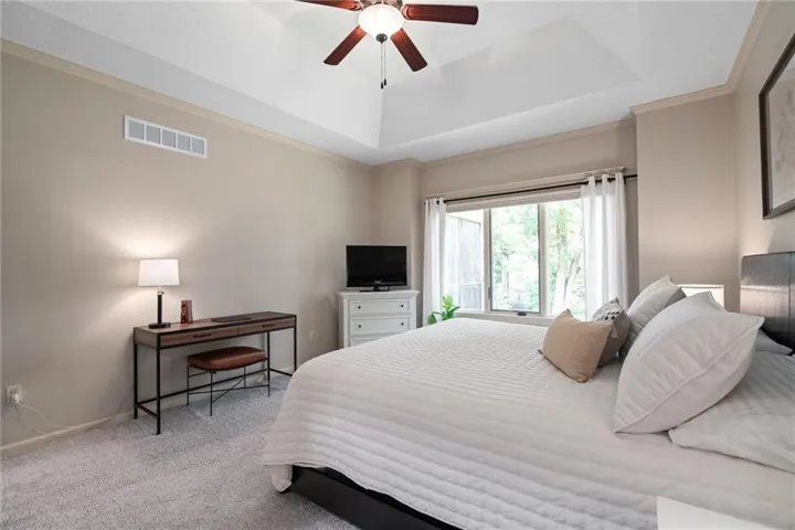 +"PublicRemarks": "Enjoy a maintenance free lifestyle in this beautifully updated patio villa. Say good-bye to shoveling snow, mowing the yard and exterior painting. Gourmet kitchen with stainless steel appliances, duel fuel range, walk-in pantry, kitchen island, easy care white quartz countertops make whipping up your favorite recipes a breeze. Relax in the screened deck, perfect for enjoying the treed, private backyard without the bugs! Main level offers primary bed and bath, walk-in closet, laundry room (washer and dryer stay) and secondary bedroom and bath. The finished lower level boasts a large living area, 3rd bedroom, bath and oodles of storage space. This is the ideal blend of comfort and maintenance free living. Convenient location to highways, entertainment and restaurants. It's all been done ready for you to relax and enjoy."