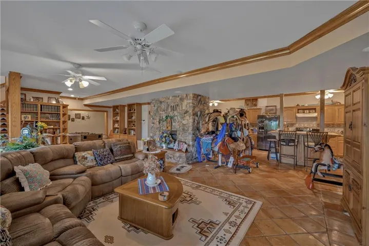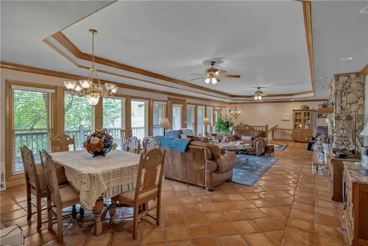 +"PublicRemarks": "This 578+/- acres farm/livestock ranch is conveniently located in the Northeast area of Lamar, MO. The property offers large open pastures with great fencing, ample hay & water for livestock with stocked lakes, ponds and automatic waterers, corrals, a year-round creek, wooded ground with a river running through it for wildlife & hunting, 2 rental properties for income or family/co-op farming, and views in every direction. The 10,000 SqFt main home offers an open floor plan with 6 bedrooms and 7.5 baths (ensuite for every bedroom), a gourmet kitchen on the main with a full 2nd kitchen on the lower level, and a walk-in safe. Entertain the family with the indoor heated pool, and enjoy the view from the expansive deck overlooking the private stocked lake and dock. The main home also has a 50kw Generac backup generator. Parcels are contiguous. Parcel ID's Included: 03-04.0-17-00.0-000-001.010; 03-04.0-17-00.0-000-002.010; 03-04.0-18-00.0-000-007.000; 03; 04.0-17-00.0-000-001.030; 03-04.0-17-00.0-000-001.000. An additional 400 +/- acres are available."