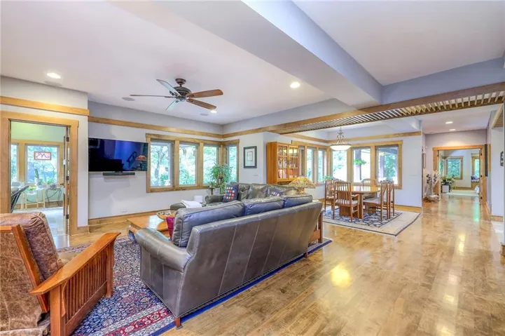 +"PublicRemarks": "Rare opportunity to own this stunning custom estate nestled on a private 2 acre treed lot! Your own private retreat! Built w/craftsmanship & character, truly one of a kind. This spectacular home was designed by renowned architect & author Sarah Susanka & built by Bob Willis Custom Homes. Thoughtfully, well-crafted custom home, where every detail has been carefully considered & selected to create a warm/inviting living space inside & out. Gourmet kitchen is equipped w/gas Wolf Cooktop range, warming drawer, Sub-Zero refrigerator, island & stunning Murano glass pendant lights from Murano Island. Spend days relaxing in your private garden sunroom w/beautiful arched ceiling. Stunning great room w/floor to ceiling fireplace seamlessly flows into dining room & kitchen, perfect for entertaining guests, dinner parties & cheering on your favorite team! Entertainment sound system w/ceiling speakers throughout. Main floor primary bedroom has patio access! Ensuite boasts heated floors/custom closets! The home features built-in shelves, soft close drawers, window seats with storage, & well-placed alcoves, adding elements of charm/functionality. With 75 windows & multiple skylights, you are bathed in natural light! Solid hickory doors, maple floors, & custom trim enhance the unique beauty. Expansive finished daylight bsmnt! NEW water softener, water heater & Halo decalcifier! 2 NEW Furnaces! 2 NEW AC units! Enjoy the spacious outdoor living areas w/large patios under the extended roofline, beautifully landscaped grounds, & exquisite stonework. 4 car garage! Located just down the street from Gary Haller Trailhead, this home is perfect for biking, walking, & running enthusiasts! Easy access to the Kansas River/Shawnee Mission Park. Don’t miss out on this truly unique home that blends timeless character w/modern luxury. Taxes per county record. SqFt per appraiser measurements. Room sizes approx. No preference or limitations because of any of the protected classes under fair housing."