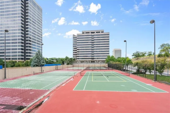 +"PublicRemarks": "You will fall in love with the View from the Condo and the Balcony! Liberty Memorial is your backyard. Walk underground to the Streetcar and Crown Center. Fitness Center, swimming pool, tennis court, pickleball court and beautiful gardens to enjoy. Concierge service and security. Recently updated flooring to LVP. Large 1 Bed 1 Bath at 817 Square Feet. Includes a Garage Parking Space and Storage. Impress your friends and family with this to die for condo and its location and view! Short Term Rentals are not allowed and strictly enforced in the Santa Fe Condo Association. Only 1 year Leases allowed."