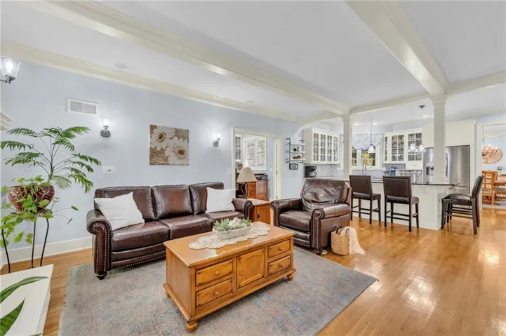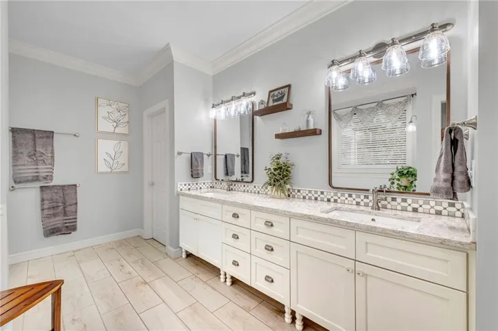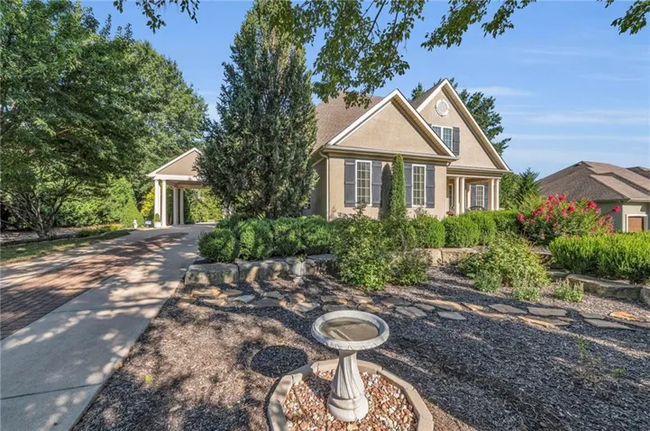+"PublicRemarks": "Drive past the community lake & through the serene forest to discover this stunning European design home, perfectly complemented by a charming Cottage Garden. As you approach, a covered front porch w/a welcoming porch swing & Romanesque columns invites you into an expansive 2-STY foyer adorned w/gleaming WD FLR. To the right, the cozy Liv RM flows seamlessly into the dining RM, which features a built-in window seat flanked by decorative shelves. The dining RM connects to the expansive kitchen & hearth RM, where a massive BKFST island w/an integrated cooktop, quartz countertops, & picturesque window above the undermount sink overlooks lush backyard & multi-tiered paver patio. The kitchen is equipped w/SS appliances, including a built-in oven & micro. The adjoining hearth RM, complete w/a gas FP, opens to a side portico featuring a 2nd porch swing & view of 3-car side entry garage. Adjacent to the hearth RM, you'll find a practical laundry/mud RM & a spacious office w/built-in cabinets, which also offers access to the patio. The owner's suite, located just past the 1/2 bath & laundry chute in the hallway, boasts a vaulted ceiling w/accent lighting, an en suite bath w/a luxurious soaker tub, dual walk-in closet, shower, double vanity, & quartz countertops. A gorgeous staircase leads from the foyer to the 2nd floor, where 2 BRs, each w/ceiling fans & walk-in closets, share a Hollywood bath w/individual vanities & a shared shower/tub area. A 3rd BR offers a walk-in closet w/attic storage access, & a private balcony overlooking the foyer. The daylight walk-up finished LL features a 2nd full kitchen w/SS appliances, an expanded craft closet area, a family RM w/built-in dry bar, a 4th BR w/a private bath that opens to the back paver patio & abundant storage. Surrounded by meticulously designed cottage gardens, this home is a true designer's dream, offering an idyllic retreat from the hustle & bustle. The extra deep garage is pre-wired for future EV charging."
