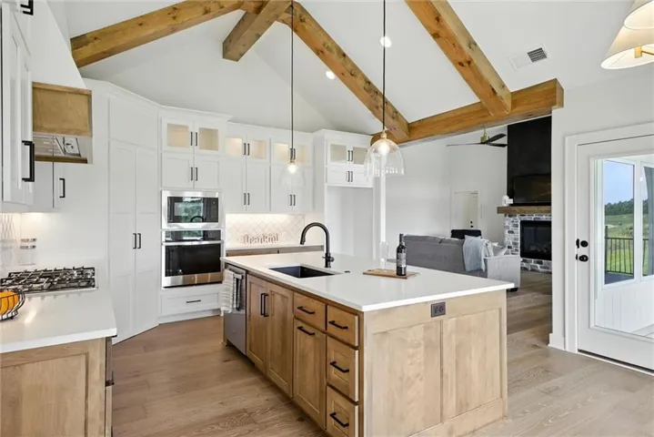 +"PublicRemarks": "This is The Chateau, where luxury meets comfort. It’s the dream home you have been looking for in The Estates at Knoll Creek, Raymore, MO. This stunning new home by Signature Builders KC, LLC, offers 4 bedrooms, 4 bathrooms, and an array of custom details and designer upgrades. Enjoy peaceful mornings on the covered front porch or large covered deck, which overlooks the community pond. The master suite is a true retreat, featuring a beautiful feature wall and serene backyard views. The spa-like bathroom includes a unique wet area with a walk-in shower and a freestanding soaker tub, along with a spacious master closet connected to the laundry room for added convenience. The finished basement boasts a full bar, an expansive family room, 2 additional bedrooms, 2 bathrooms, and ample storage space. Raymore is known for its welcoming community, excellent schools, and convenient access to shopping, dining, and outdoor activities, making it the perfect place to call home. This property combines modern luxury with small-town charm—schedule your tour today!"