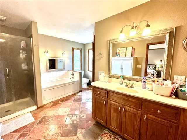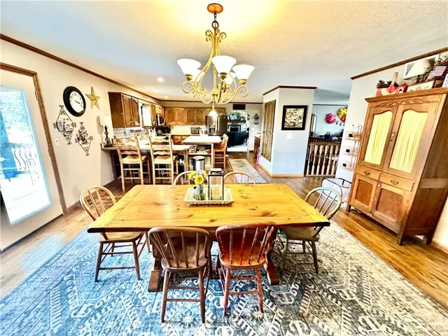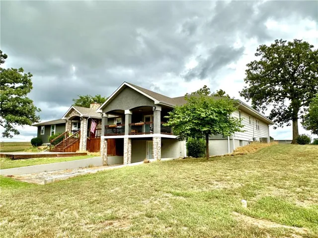 +"PublicRemarks": "Rare opportunity to own a 238-acre diversified property with a beautiful country home, multi-purpose barn facilities, perimeter fencing, prime hunting, unlimited recreation and only minutes from El Dorado Springs, MO! The ranch style home sets on 10 acres and boasts 5 bed/4 full bath, 4,868 sqft of living space, including an open living room with vaulted ceiling, focal stone fireplace, formal dining, expansive country kitchen/dining combo with lots of oak cabinets, huge island, laminate countertops, s/s appliances and an updated laundry room. A newly constructed master bedroom, bath, walk-in closet and office all on the main level. The walkout basement includes a family room, bedroom, full bath, playroom and storage room. The home has 2 HVAC units. Outside, there is an 1,078 sqft concrete patio, an 18’x33’ above ground saltwater pool, deck and an evening firepit just yards away. There is an 1,801 sqft one-car detached garage with shop and a 60’x120’ multi-purpose barn with concrete floor and steel trusses designed for hay storage and pens for livestock, all accessible by the circular driveway. Across the highway, is an additional 228 acres currently used for grazing a nationally respected registered Beefmaster herd. At present, the owner is running 100 plus pairs. This property offers open pastures, wooded timber, large pond and Walnut Creek runs throughout the center, an excellent source of year-round water for livestock or game. The hills and bottom ground are covered with fescue legume mix of grass with large areas of bermuda and the large bottom ground persists with grass to keep the necessary forage for your livestock. There are many majestic oaks throughout this property and especially on the NW 40 which lends views to a park like setting. This property contains an abundance of wildlife and the buyer could be set up just in time for fall hunting season. If this property fits your checklist, call us today for a showing!"