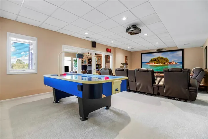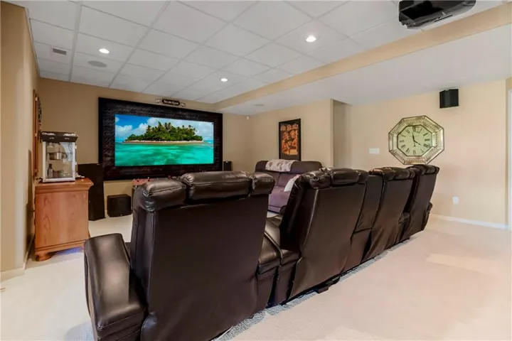 Downstairs you’ll be delighted by the huge family room and walk out exercise or private office space. This level boasts a cozy fireplace, wet bar, fridge and sink for entertaining. Enjoy a large media/theatre room with reclining seating and big screen projector and popcorn machine! The luxurious lower level also has a large 4th bedroom and full bathroom.\r\n