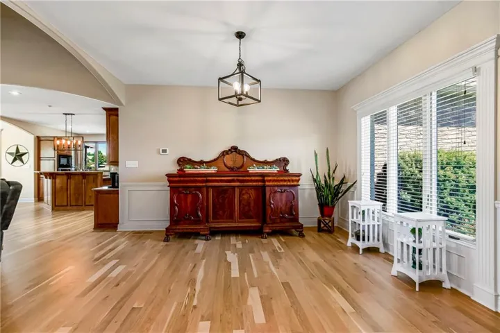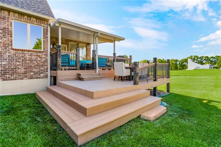 You'll appreciate the open floor plan with soaring ceilings and architectural beams. The living room flows into a large kitchen and dining area. Custom woodwork in this home is gorgeous—from newly finished hardwoods through the main living area to the kitchen's stunning cabinetry. The expansive dining area walks out to a covered composite 2 level deck overlooking a beautiful estate. \r\n