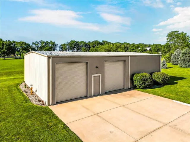 The sweeping concrete driveway from the house to an amazing 40 X 60 outbuilding allows multiple cars to park for a gathering, or to drive your RV and boat in through 2 – 12’ overhead doors.The outbuilding is fully heated/cooled, with an "office" with full bath with shower and laundry hookups. There’s an RV hookup for water, electric and sewer, and there’s also an air compressor and a car lift for auto enthusiasts.