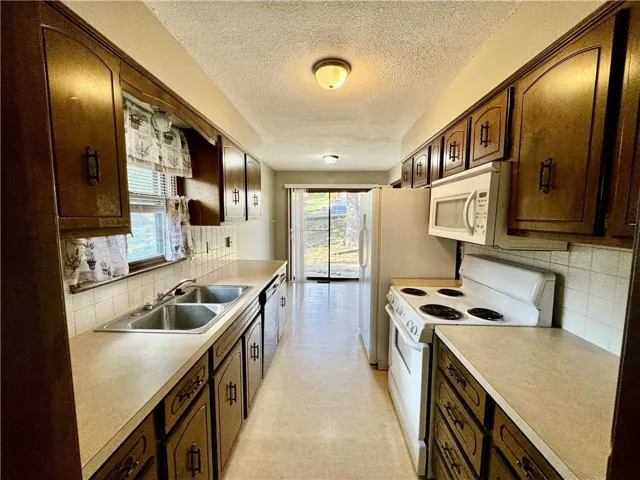 "LongDescription" => "Kitchen featuring brown cabinetry, dishwasher, a textured ceiling, black microwave, and tasteful backsplash"