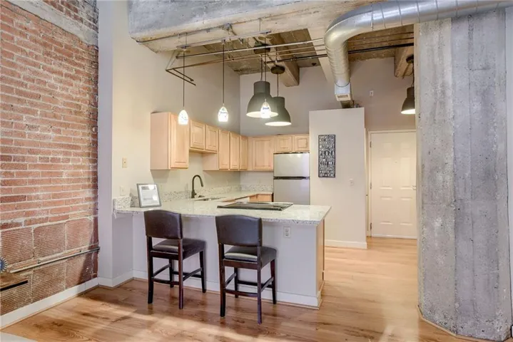 Experience urban living in this hip 1-bedroom, 3rd-floor industrial loft featuring stunning exposed brick and soaring vaulted ceilings. Located in the heart of the downtown Garment District, this spacious loft blends modern updates with classic industrial charm. Enjoy brand-new faucets, sinks, and sleek granite countertops (2024), alongside a new HVAC system (2022) for year-round comfort, and a new oven (2020). With finished flooring throughout, a large bath suite, and a walk-in closet, this unit offers both style and functionality. \r\n