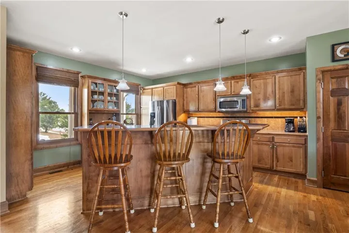 Welcome to 18390 Mimosa Court in Gardner, KS! This beautifully updated 3-bedroom, 4.5-bath, 1.5-story home offers 3,827 sq ft of living space and sits on the largest lot in the neighborhood at .33 acres. Featuring $100K in upgrades, including new Renewal by Andersen windows with a transferable 20-year warranty, a new roof (2021), new HVAC and AC units (2024), new silent garage doors, and much more.\r\n