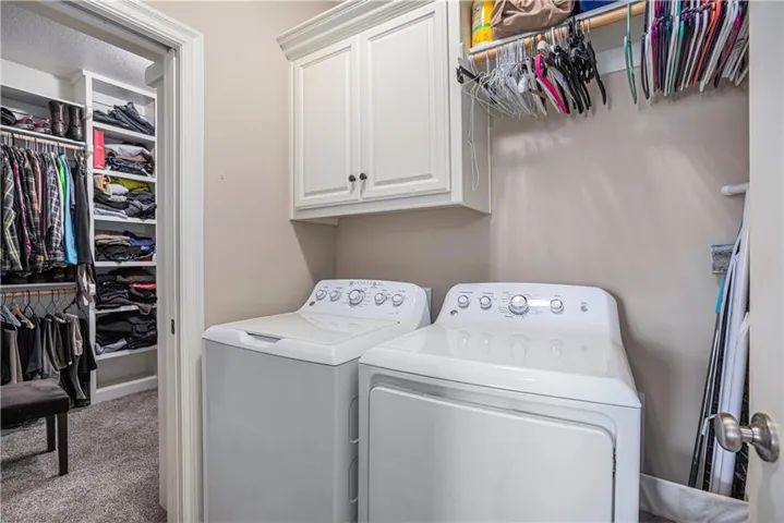 "LongDescription" => "Laundry room with hookup for an electric dryer, light carpet, hookup for a washing machine, cabinet space, and recessed lighting"