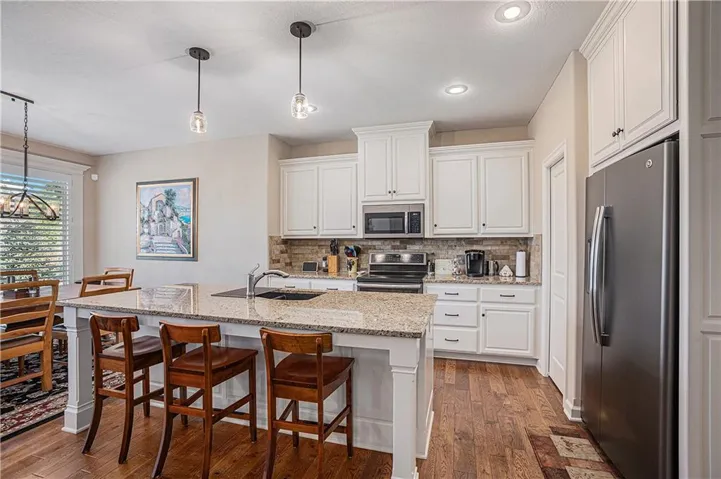 +"PublicRemarks": "Stunning, Wonderfully maintained 4-bed, 3-bath home with an open floor plan and abundant natural light. Features include a modern kitchen with stainless steel appliances, granite countertops, a large island, and ample closets. The main suite has a walk-in shower and soaking tub on the ground floor. Enjoy a gas fireplace, plantation blinds, hardwood floors, and a finished basement. The backyard has a large patio, low-voltage accent lights, and a WiFi-enabled irrigation system. Tech-savvy home with Nest Thermostat, Ring Doorbell, and WiFi-enabled features. Access to 4 pools, playgrounds, sports courts, clubhouses, and trails leading to top-rated schools. One Owner. Two Mounted TVs in the Bathroom and Outdoors are Included. Enjoy this beautiful, low-maintenance lifestyle."