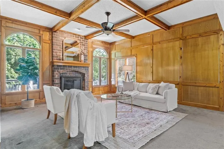The heart of the home is the spacious great room, complete with a fireplace and coffered ceiling with a great connection to the kitchen. The main level primary suite, great room, kitchen, dining, and laundry room make for easy single-level living. Upstairs, the three bedrooms and full bathroom offer space for an office, workout room, craft room, or bedrooms if needed, while downstairs is a full unfinished basement ready for your ideas! The driveway has been replaced and the garage is finished nicely. \r\n