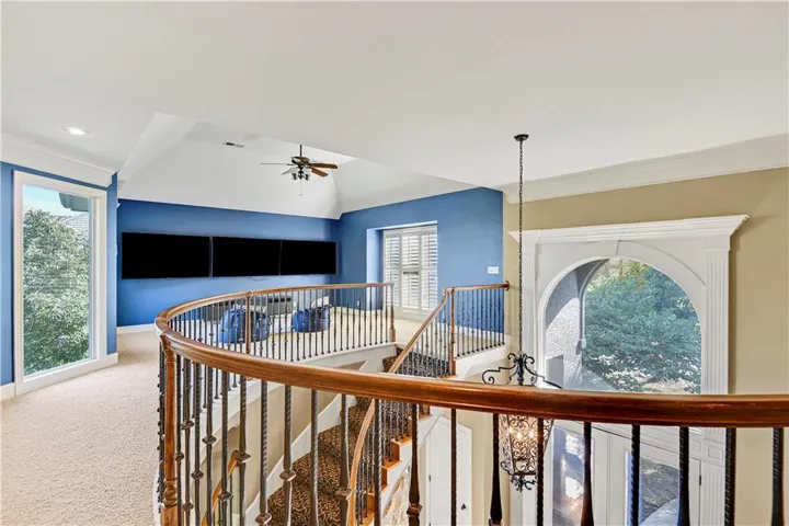 Prepare to be amazed when you step inside this breathtaking home on a golf course lot! This Fred Riley built home features 5 Bedrooms 4.1 baths, a grand front staircase, as well as a convenient back staircase, enhancing the flow of the open floor plan. The Restoration Hardware-inspired dining room and gourmet kitchen make this home perfect for entertaining. Off the kitchen, you'll find a beautiful lanai complete with a fireplace, TV, and outdoor dining space, perfect for relaxing or hosting gatherings.\r\n