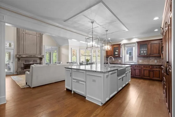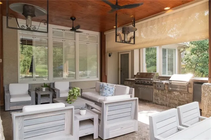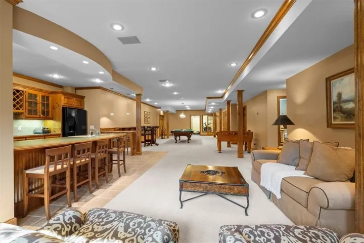 +"PublicRemarks": "Be prepared to be wowed when entering this luxurious home filled with modern amenities and thoughtful upgrades. The combination of new porcelain tile, dramatic staircase and updated hardwood floors creates a sense of sophistication right from the entryway. The expansive kitchen island with built-in appliances invites gatherings, while the family room bar and wine fridge add the entertainment possibilities. Outdoor living is just as impressive with a covered porch equipped with remote shades, heater and built-in grills, perfect for year-round enjoyment. Upstairs, you will find spacious bedrooms and a loft for flexible use, while the lower level is ideal for fitness enthusiasts with its exercise room, kitchen and 5th non-conforming bedroom. The home sits on a beautifully landscaped half-acre lot, complete with black metal fencing for added security and appeal. The active neighborhood provides a host of recreational amenities like pools, lakes, sport courts and walking trails, making it a true retreat. Despite this, its conveniently close to restaurants and shopping at Corbin Park and Prairie Fire, giving you the best of both worlds."