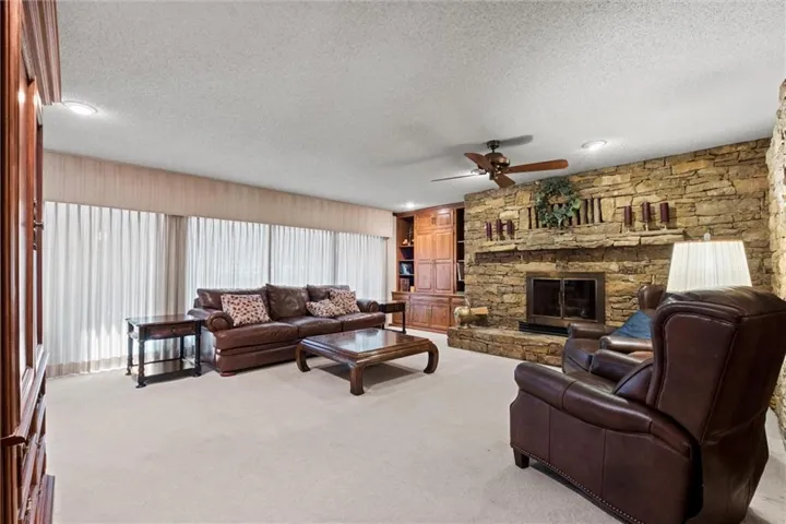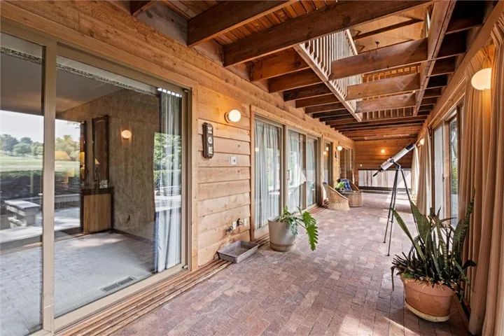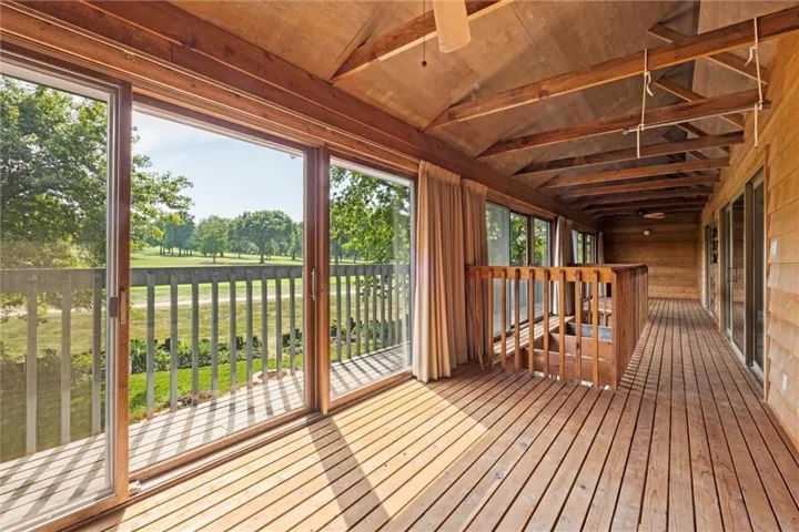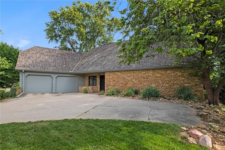 This is a Double-shell passive solar home positioned to appreciate the panoramic views from the 11th green of Lawrence Country Club from almost every room. As this amazing home captures the sun, the monumental stonework and fireplace will capture you. Relax in your favorite easy chair and imagine this joy everyday. Main level primary suite, large living room with a built in wet bar, breakfast nook off the kitchen, walk-in pantry, and a gorgeous German crystal chandelier hanging in the dining room that will seat the entire family. Oversized 2 car garage provides the storage space you'll need. Find 3 more bedrooms upstairs with another spacious family room, as well as the bonus game room above the garage.\r\n