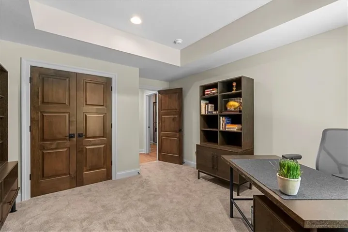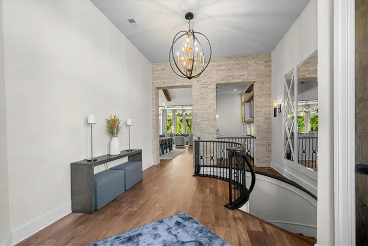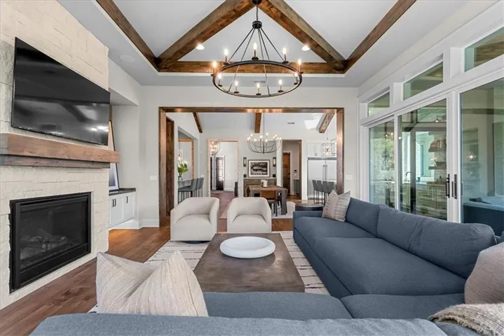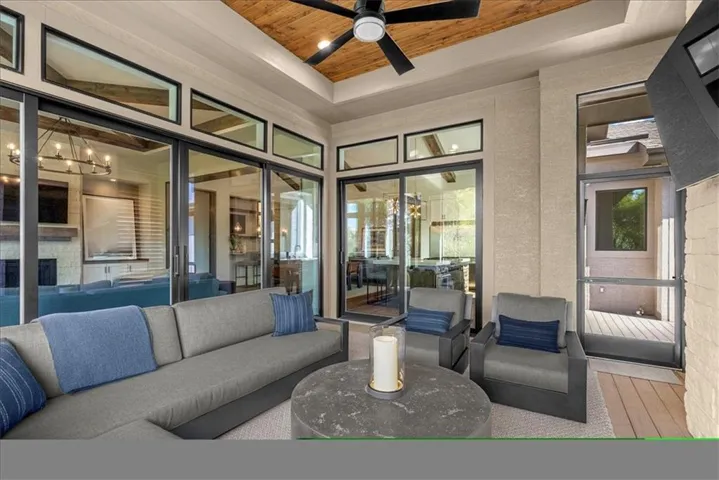 This custom home is truly one-of-a-kind. Stunning, Reverse 1.5-story Clydesdale Plan by Willis Custom Homes. Better than new & move-in ready, located in highly sought-after Mills Ranch w/ terrific amenities. One of the few homes backing to trees, it offers exceptional privacy in a serene setting. Meticulously maintained home w/ high-end finishes throughout that leaves you wanting more. Past the grand foyer, you're greeted by soaring ceilings & striking brick accent walls. The main level bar invites you to entertain in style, & the open-concept floor plan is perfect for both large gatherings & intimate socials. The gourmet kitchen is a chef's dream, featuring a large center island, a gas cooktop, abundant natural light, & top-of-the-line Thermador appliances. The expanded butler’s pantry provides ample storage, prep space, office space & a double oven. From the kitchen and great room, step out onto the screened lanai complete with a cozy fireplace & oversized double sliders, creating the ideal indoor/outdoor living experience. Primary suite offers a peaceful retreat w/ high-end finishes, spa bathroom & spacious walk-in closet. Impressive curved staircase leads to the walk-out LL, where you'll find a 2nd bar, large exercise room w/ oscillating fan, TV, and mirrors,, huge family room, 3bed/3bath & second laundry room. Don’t like stairs? Designated area stubbed & ready for an entry elevator. The walkout basement opens to a covered patio that overlooks the private, tree-lined backyard. Suspended garage provides loads of storage space, offering endless possibilities for additional SF. \r\n