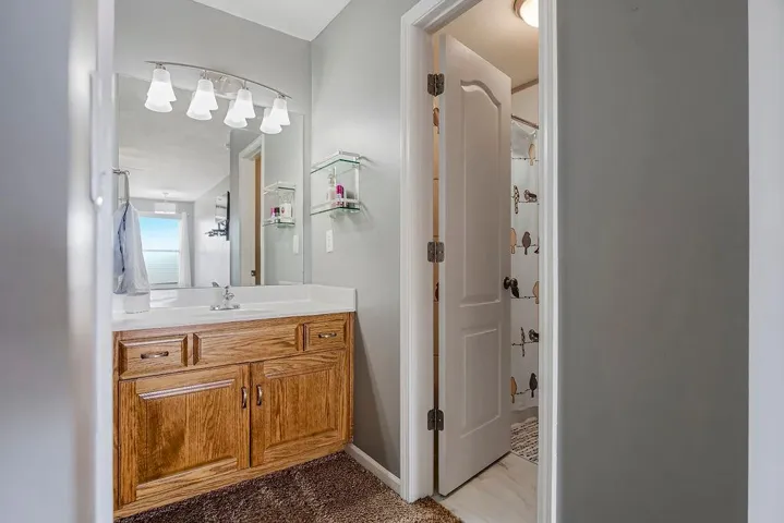 +"PublicRemarks": "This beautifully maintained 1.5 story home exudes pride of ownership, offering a blend of modern comfort and timeless appeal. Built in 2006, this newer home features a light and bright master suite on the main floor, ensuring convenience and privacy. Upstairs, you'll find two additional bedrooms, each with their own sink, connected by a Jack and Jill bath, and adorned with charming dormer windows that invite natural light. All bedrooms have walk-in closets. The kitchen features granite counter tops and soft close cabinets and drawers. The partially finished basement adds extra living space, including a cozy additional living room and a versatile office that could serve as a non-conforming bedroom. The upstairs living room features an electric fireplace providing efficiency, warmth, and mesmerizing beauty. Recent updates enhance the home’s appeal, including new roof in 2020, new exterior paint in 2023, new flooring, new window screens, and newer sliding patio door with integral blinds that lead you to the large, modern back deck. You can also enjoy relaxing on the covered front porch, which adds to the home's inviting curb appeal. This home is the perfect blend of style, comfort, and charm. Schedule a tour and make this your home today!"