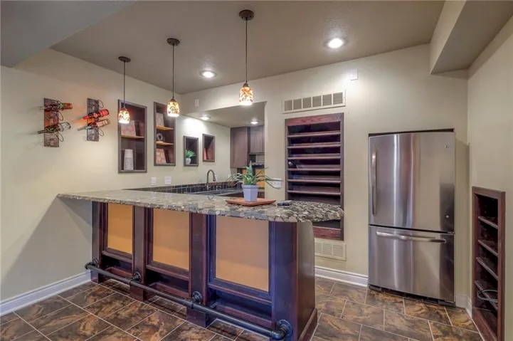 +"PublicRemarks": "Reverse 1.5 story backing to golf course in coveted Creekmoor! Great room boasts fireplace and built ins and overlooks\u{A0}wall of windows with breathtaking golf course views! Kitchen with stainless steel appliances, island and ample prep space! Kitchen overlooks the breakfast room and walks out to covered deck, perfect for dining al fresco or your peaceful morning coffee! Main level primary bedroom\u{A0}with ensuite boasts double vanity, walk-in shower, jetted tub and walk-in closet with built-ins! Main level laundry and additional bedroom/bathroom complete this level. Finished walk-out basement with breathtaking views is the perfect place to entertain! Basement bar with refrigerator, pellet ice machine, dishwasher and wine rack overlooks media area with built in Panasonic projector and 106" retractable\u{A0}screen! Finished basement is complete with workout room and additional bedroom! Enjoy the amenities of Creekmoor - clubhouse with restaurant open 7 days a week, fitness center, pools, biking/walking path, athletic courts, 108-acre no-wake lake for swimming, paddle boarding, kayaking, fishing and more! POA discounted rates for 18 hole golf course! Welcome Home! SqFt per county record. Room sizes approx. No preferences or limitations or discrimination because of any of the protected classes under Fair Housing."
