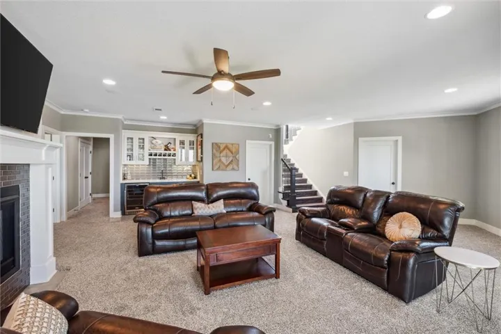 The primary suite is a true sanctuary, boasting a tiled shower with dual shower heads, a double vanity, an oversized jacuzzi tub, and the walk-in closet you've been dreaming of — complete with an additional laundry option. Entertain effortlessly in the lower-level second living space, featuring built-ins, a tiled fireplace, and a wet bar. Each of the three additional bedrooms also includes its own walk-in closet, ensuring comfort and privacy for all.\r\n
