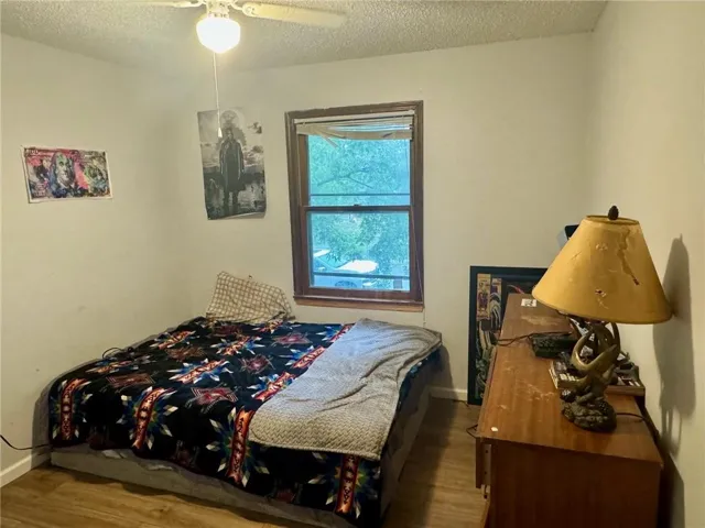 "LongDescription" => "Unfurnished bedroom with a raised ceiling, a barn door, ceiling fan, and light hardwood / wood-style flooring"