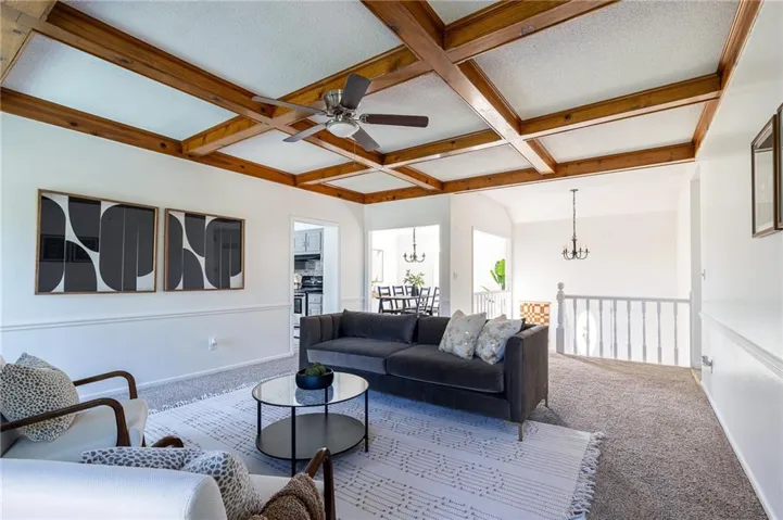 The formal dining room is perfect for special occasions, seamlessly connecting to the kitchen and Living room which has a gorgeous beamed ceiling and a cozy fireplace . Step outside to a huge deck that overlooks your private yard filled with vibrant fruit trees, ideal for summer barbecues and relaxing evenings. The fenced yard provides a safe and secure space for kids and pets to play freely, while the two-car garage keeps your vehicles protected and offers extra storage for outdoor gear. This home combines comfort with style, offering modern amenities in a peaceful neighborhood. Don’t miss your chance to own this beautiful property! Schedule a showing today and discover the perfect blend of space, comfort, and nature! Fresh interior paint as well as fresh Deck , Fence, & Home exterior paint