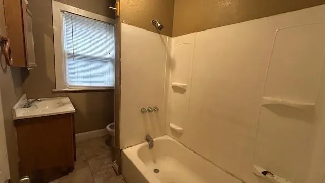"LongDescription" => "Full bath featuring double vanity and shower / bathtub combination with curtain"