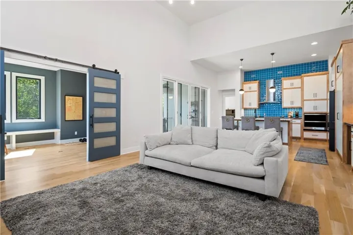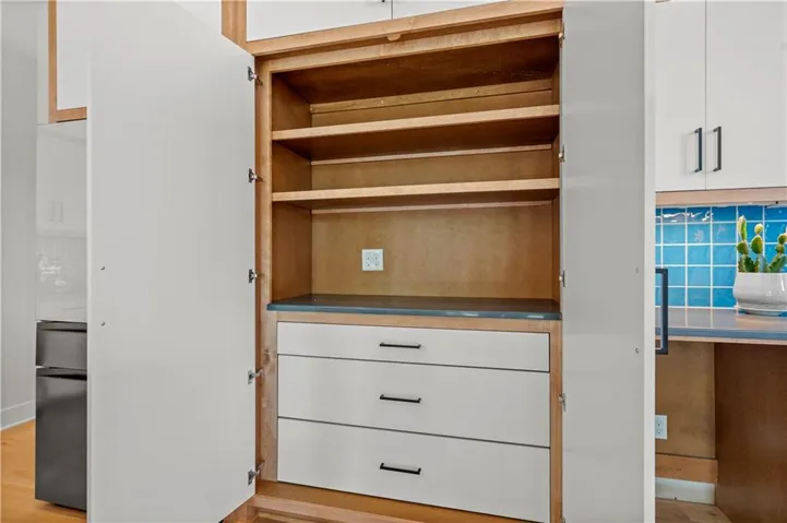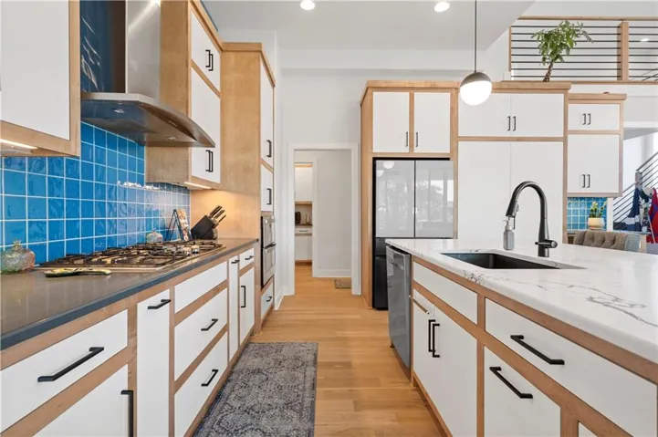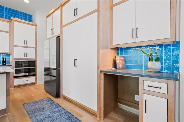 +"PublicRemarks": "Welcome to this custom 1.5-story home. The open layout provides a seamless flow between the kitchen, dining and living spaces. The gourmet kitchen is both stylish and functional boasting custom maple cabinets with soft closing drawers, quartz counters, a bakers cabinet, gas cooktop and double oven-appliances are WIFI enabled. The butlers pantry off the kitchen provides extra storage and a great place to prep, store and shut the door. There's a versatile office/den/flex room, providing the perfect space for remote work or quiet reflection. The primary suite is on the main level with a bathroom that will make you feel that you are at a spa with its large tiled walk-in shower and tub. Custom cabinetry throughout the home adds a touch of elegance and sophistication, while ensuring ample storage space for all your needs. Upstairs, you will find a loft area, and three additional bedrooms and two baths as well as a second location for a washer and dryer. Other convenient features are ceiling fans with remote controls, garage doors can be controlled from an app, 3rd car garage space has a ceiling mounted hoist for removal of a hardtop. The walk out lower level offers additional space to make your own. Enjoy the beauty and privacy the mature trees provide as you enjoy time on your covered deck or patio The maintenance provided lawncare plan provides mowing, fertilizing, and snow removal. Situated across from Lake Lenexa, outdoor enthusiasts will delight in the proximity to nature trails, fishing spots, and scenic picnic areas. Whether you're kayaking on the lake or simply enjoying a leisurely stroll along its shores, this idyllic location offers endless opportunities for outdoor enjoyment."