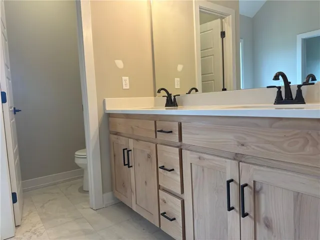 +"PublicRemarks": ""The Ashton II," an exquisite reverse 1.5 story residence with an extra large granite island, corner stone fireplace, private mud room, walkthrough master closet, jacuzzi tub in master, master shower with granite seat, dual quartz vanity in main, lot close to an acres, composite covered deck, extra large concrete pad in back, walkout basement, 2 full bathrooms in basement, HE furnace, blown in insulation. Laundry on main level. Wood floors through main floor primary bedroom. Walk in pantry. Wet bar in the walkout basement with room for a full size fridge. One bedroom in the basement has an en-suite bathroom. Beautiful front porch. In ground sprinkler system. All square footage is approximate. This home is complete and move-in-ready!"