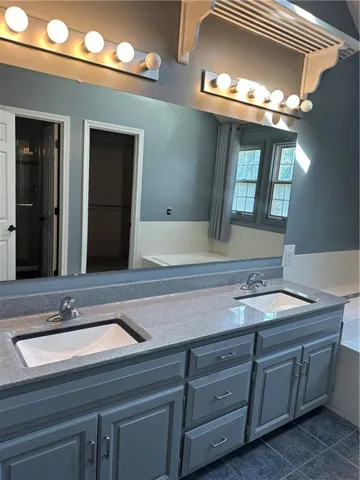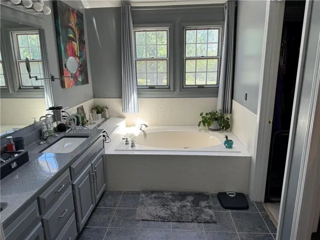 One-level living, with a great finished basement! Recently updated kitchen, with a pantry and laundry room adjacent. Large primary bedroom and ensuite bathroom, with a HUGE walk-in closet, and custom closet system! Primary shower has an advanced shower system, not just a shower head! Wonderful entertaining space in the basement with surround sound, with a bar. 3rd bedroom in the basement with a full bathroom; shower is large and has 2 shower heads! 2nd laundry facility in the basement, plus a storage room that could be considered a safe room! Main garage has an acrylic floor. Utility garage in the back basement level for storage of yard equipment. Beautiful outdoor features, with a patio close to the house, built-in grill, and another peaceful gathering area just 30 or so feet from the home. Lawn equipment can be stored in an additional small garage space in the back.\r\n