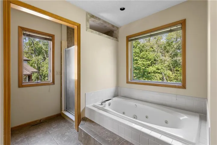 full bathroom, a kitchen area provided and a walkout basement. Huge deck with a beautiful view looking out over an estate like lot (approx. 3/4 of an acre) with no close neighbors behind you. Lower concrete patio with a lot of privacy. Circle Drive in front and 3-car garages with driveways on the side gives optimal parking for the family or visitors, or both and great space for a basketball court. Laundry room off the \r\n