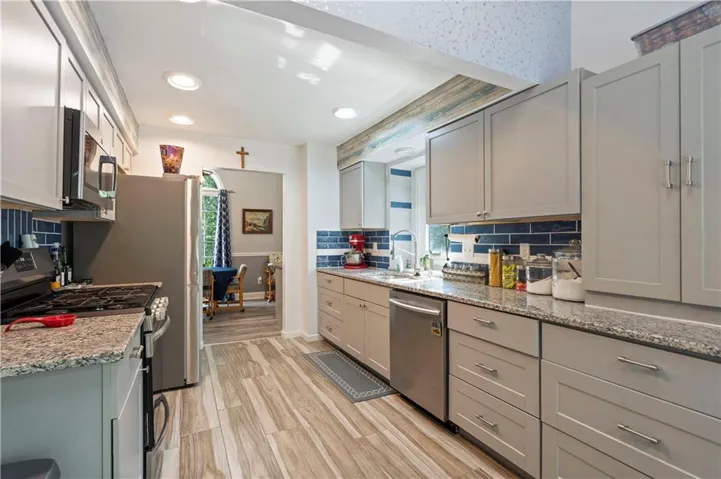 This lovely upgraded 4 bedroom, 3 bathroom multi level home is amazing!! The large foyer sets the tone for perfect living. The upper level welcomes you to a large living area with a fireplace and opens up to a beautiful, upgraded kitchen. Loads of new in this efficiently arranged area with beautiful granite countertops!! From the kitchen, you may enter the formal dining area a large paned window overlooking the front yard or out the back onto a very spacious deck. This deck is large and a perfect spot to watch the fall colors appear and BBQ some steaks on the gas grill, which will stay. Just a few steps down from the foyer you will enter into an awesome open area with a bedroom, bathroom, spa area as well as a recreation room perfect for a media area. This area also boasts a large wall of built ins. The walk out basement gives perfect access to the WOW backyard. DO NOT miss out on this beauty located in the Piper School District and is near excellent shopping and easy access to the interstates.\r\n