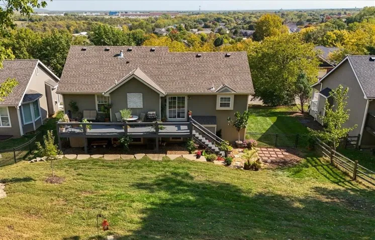+"PublicRemarks": "This home greets you with soaring ceilings, gleaming hardwood floors and plenty of natural light. Kitchen features stainless steel appliances, quartz countertops, and breakfast bar with the sink complete with a window with views to the back yard. Enjoy the benefits of no neighbors behind you, offering even more privacy on this peaceful street. Giant deck off dining area overlooks the expansive back yard, perfect for entertaining, with plenty of possibilities. Want to build a fire pit? Maybe a beautiful garden? Or maybe just room to bring the plants out in the spring? This home has that and more! Plenty of space with two separate living areas, kitchen overlooks living room on the first floor, and family room in basement is complete with a wine bar and a bonus bederoom ideal for hosting guests. Convenient to I-70, don't miss this opportunity to make this home your own!"