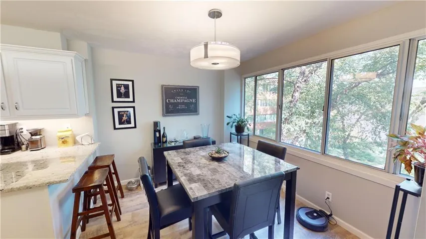 +"PublicRemarks": "Beautifully renovated 1 bedroom 1 bath condo in a distinctive community with a private outdoor balcony overlooking garden & fountains. Gorgeous Kitchen with High-end Stainless steel appliances, granite countertops, & dining area. Chic bathroom with updated tile, glass shower door, & double vanity. Wood flooring throughout except for the carpeted bedroom & freshly painted interior with flat ceilings. Lots of windows with terrific natural light & extremely energy efficient unit that averages <$50 month in electricity which is your only utility bill since everything else is covered by the HOA including cable TV & high speed internet! Great closet space with custom built-ins for your wardrobe & storage needs too! Amazing community amenities including doorman, secured underground parking, private 2 acre park with lush landscaping, fountains, BBQ area, olympic sized salt water pool that overlooks the Liberty memorial, & access to Crown Center shops through the garage too! Just a short walk across the sky bridge to Union Station & the Streetcar which gives you easy access to all of the amazing restaurants & shops from Crown Center to the Crossroads, Power & Light District, Downtown, & River Market too! Pets are welcome but restricted to weight limits & must comply with the community's rules. Parking spots are available for lease from Crown Center for approximately $116 Mo."