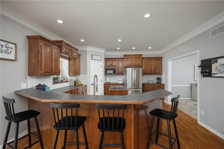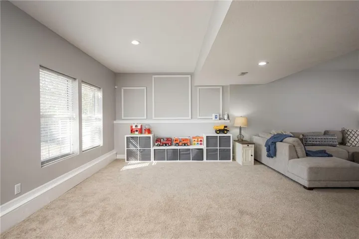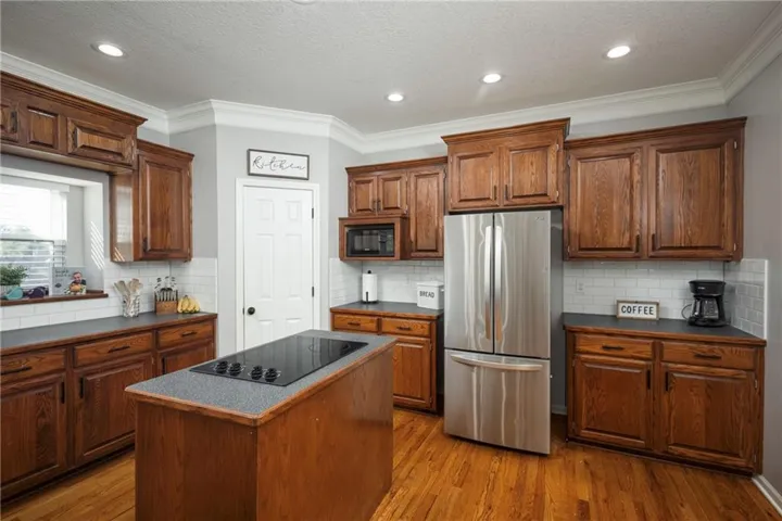 +"PublicRemarks": "Nestled in a quiet cul-de-sac this 4 bed, 3.5 bath, 3 car garage home located in the award winning Blue Springs School District has so much to offer. This home has over $20,000 in updates/upgrages in the past year. There is so much “NEW” in this property. The home has been tastefully updated with all fresh interior paint, updated lighting throughout, renovated bathrooms,, new blinds throughout, new hardware, new light fixtures,, new plumbing fixtures, new front door, new sliding glass door and new dishwasher to name a few (see supplements for full list). The main floor features a spacious/open living area with so much natural light. The kitchen boasts true hardwood floors and opens up to a maintenance free covered deck. The second floor features generous sized bedrooms, bedroom level laundry, a large primary bedroom with lots of natural light, a gorgeous renovated primary bath with elegant finishes that include a freestanding tub and shower. The second floor bathroom has been updated with a new tub, custom tile and has two sinks. The sprawling walkout basement features tons of natural light, an almost full kitchen, 3rd full bath, family room and plenty of flex space for an office, workout area, crafting space and/or game room There is plenty of outdoor space to roam with over a 1/3 acre lot. The 3rd car garage is extra spacious for a boat, truck or trailer."
