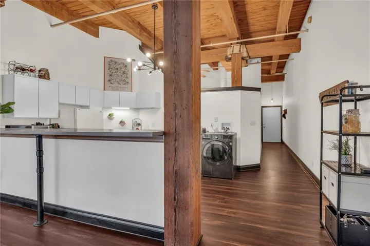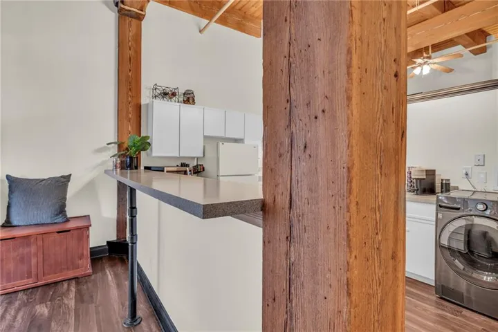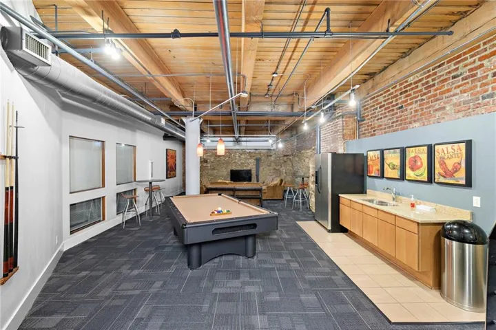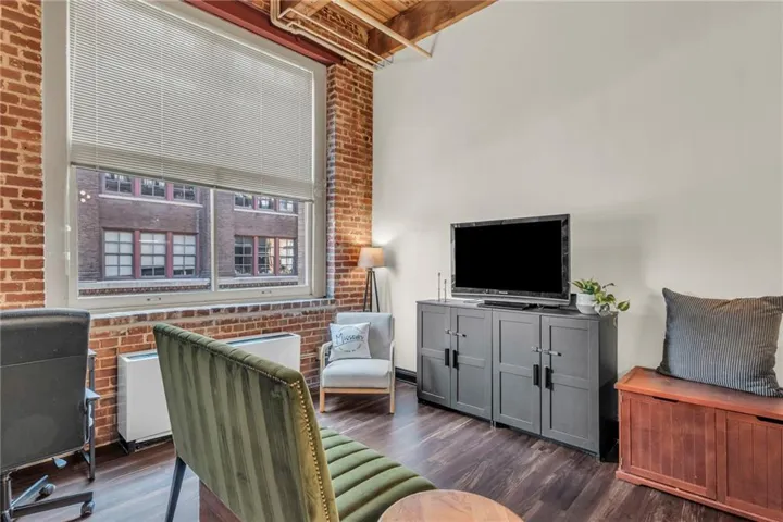 +"PublicRemarks": "Historic charm in the heart of the Garment District! Open floor plan with oversized windows allows sunlight to beam through the main living area with wood ceiling and brick wall details. Kitchen offers oversized island with plenty of seating, all appliances stay, and in unit laundry. Back down the hall you will find three storage closets and a bathroom on your way to the lofted bedroom with another closet. Building HOA amenities include fitness facility, sauna, club room, laundry center, water, and amazing rooftop deck! Attached garage parking available for monthly lease. Coveted location walkable to nearby parks, restaurants, River Market, museums, streetcar stop, and just steps away from so many entertainment options!"