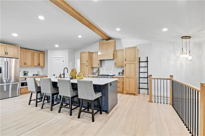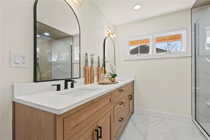 +"PublicRemarks": "UPDATE: SHOWER DOORS ARE INSTALLED AND THEY ARE STUNNERS. SELLER WILL GIVE FENCE ALLOWANCE WITH ACCEPTABLE OFFER. Prepare to be captivated when you view this down to the studs remodel with a breathtaking primary suite addition in coveted Leawood Estates with a 3 car tandem garage. This 5 BEDR 4 BATH ample REVERSE 1.5 story floor plan sets perfectly on an estate sized lot. This home is the epitome of classic with modern luxury. Eye catching cedar accents, copper gutters and downspouts, a freshly poured front porch and custom door welcome you into a vaulted main level complete with gourmet, custom kitchen with spacious food pantry, a sizable island, and quartz. The laundry/mud room is situated nearby. Welcoming, expansive living room with a gorgeous fireplace wall and built ins, the charming sunroom has a cozy sitting room and a dining area with french doors leading to the perfect outdoor space ideal for dining al fresco or enjoying a glass of wine; so fitting for true indoor/outdoor living. The tranquil primary suite is one to see! High end finishes, and french doors leading to a private cobblestone patio; an ideal setting for morning coffee. The lower level is primed for entertainment and fun! Sitting room, game room, exercise/flex room and 2 additional roomy bedrooms with another well appointed bathroom. Live the idyllic life in this beautiful, mature neighborhood close to all Kansas City has to offer and plant your roots on Sagamore Lane."