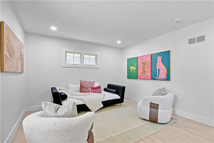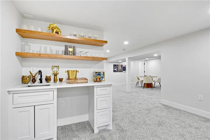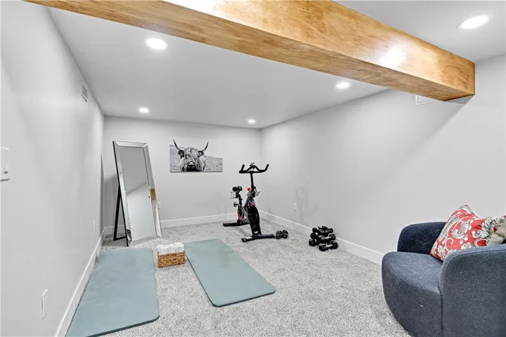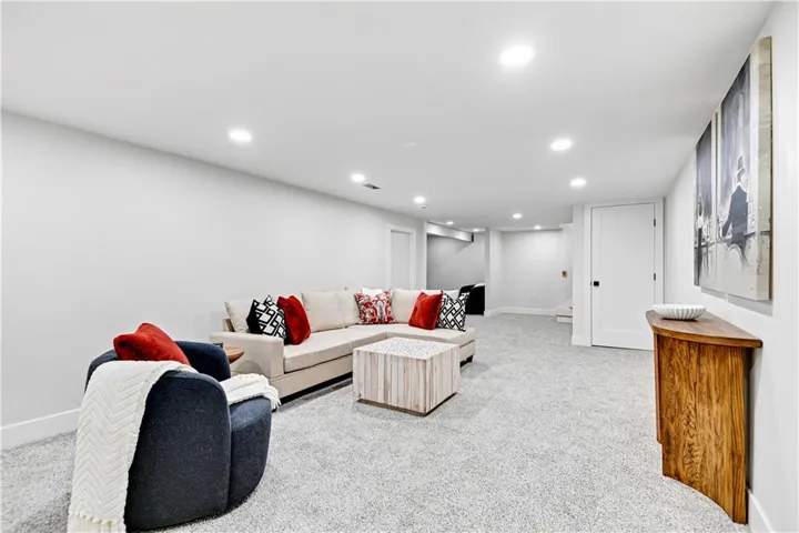 "LongDescription" => "Finished below grade area with light carpet, wooden walls, and recessed lighting"