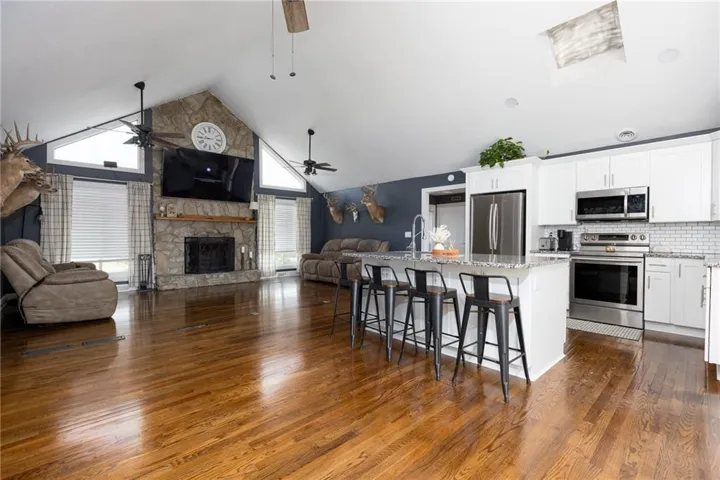 Beautifully updated 3-bedroom, 2-bath home on 5 acres, blending rustic charm with modern amenities. In addition to the main bedrooms, there is a non-conforming bedroom and a framed-in room downstairs, perfect for a game room or extra living space, with the potential for a half bath. The home’s inviting country-style double doors open into a bright dining room with all new windows and light fixtures. The brand-new kitchen features new cabinetry, granite countertops, stainless steel appliances, dual sinks, and a cozy kitchen nook that flows seamlessly into the open living room, which includes a welcoming fireplace. Refinished hardwood floors in dining room, kitchen, and living room.\r\n