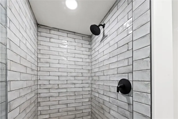 "LongDescription" => "Bathroom with a textured wall, vanity, a textured ceiling, shower / tub combo, and light floors"