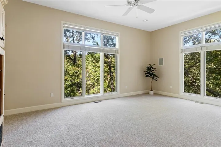 +"PublicRemarks": "Welcome to this stunning Reverse 1.5-story home in the coveted Cedar Creek - Shadow Highlands subdivision, offering a blend of comfort and luxury. With 4 bedrooms, 3 full baths, 2 half baths, and over 4,200 sq ft of living space, this home sits on a private .56-acre cul-de-sac lot with new landscaping and exterior lighting. The 4-sided stucco home with stone accents has been meticulously maintained, featuring a new roof and gutters with a transferable warranty, and a freshly painted exterior. Inside, enjoy new interior paint, carpet, refinished wood floors, and high ceilings that flood the space with natural light. The gourmet kitchen boasts ample cabinetry, an oversized island, granite countertops, stainless steel appliances, new double ovens, and a walk-in pantry. A see-through fireplace connects the great room and hearth room for added warmth. The primary suite offers a wall of windows, access to the screened deck, and a remodeled bath with double vanities, a jetted tub, walk-in shower with two shower heads, and a large walk-in closet. The main floor also includes a formal dining room, an office with built-ins and French doors, and a central vacuum system. The lower level features a spacious rec room with deck access, a 1,000-bottle wine room, a second primary suite, and a custom media room. Outdoor living includes a two-tiered deck and screened porch, accessible from the primary bedroom, hearth room, or rec room. This home, the only one in the cul-de-sac, offers privacy and access to community amenities, including a 65-acre fishing lake, pools, courts, playgrounds, clubhouse, gym, and walking trails."