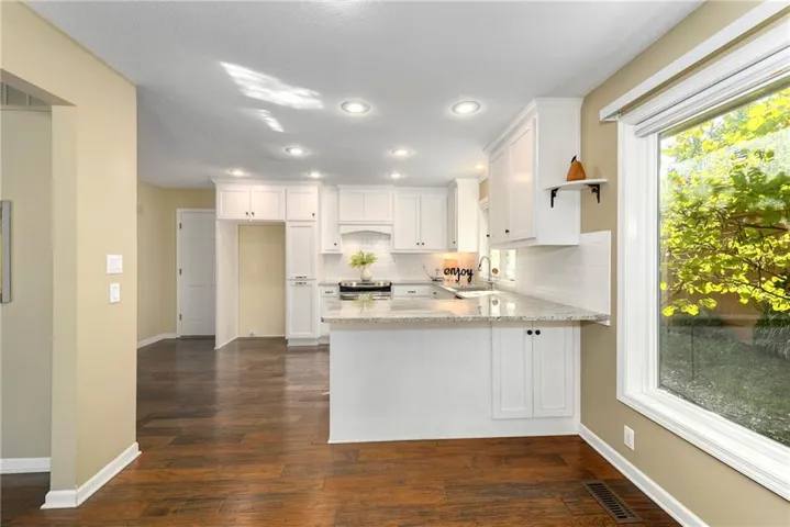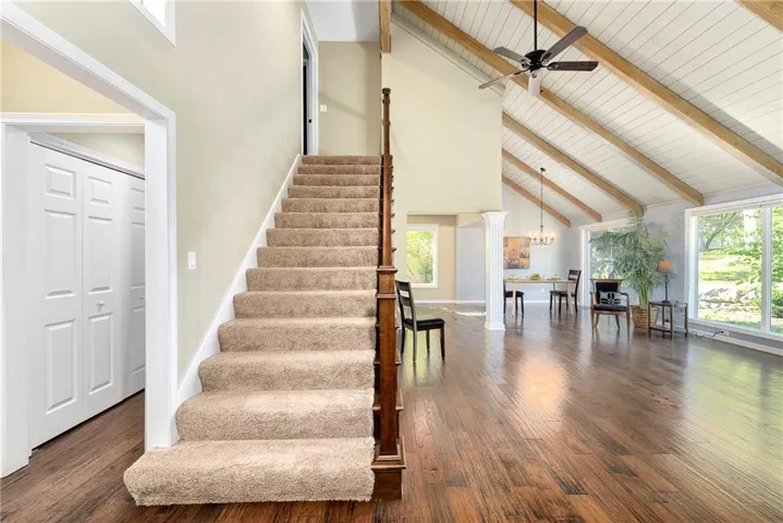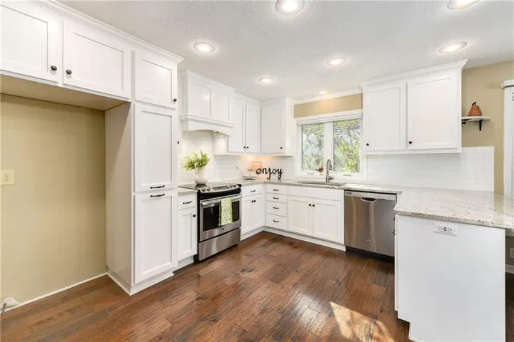 +"PublicRemarks": "Enjoy lake living (view of lake from front) and golf course living all in one (this home is on the 3rd hole). The rock fireplace and vaulted ceiling welcomes you as you enter. Enjoy the view of the golf course from the large windows. The kitchen has been beautifully updated with sold surface counters, clean white cabinets and classic subway tile backsplash. The laundry (washer and dryer remain with the home) is conveniently located just outside of the kitchen on the main level. The master suite has wood floors continuing the look and walks out to the patio (enjoy your morning coffee or glass of wine before bed). The master bathroom has double vanities and large shower (the skylight gives nice natural light in that space). A large walk-in closet is the perfect compliment. A second bedroom on the main level could make a great office (work from home?) and a 2nd full bathroom finishes the main level. Upstairs is the 3rd bedroom with its own private bathroom and walk-in closet. Entertain and spread out in the finished lower level complete with a large wet bar and full-size refrigerator. Some of the extras are; central vacuum, sprinkler system (this homeowner never used it), new modern style (adds natural light) metal garage door, pull out shelves in the kitchen."