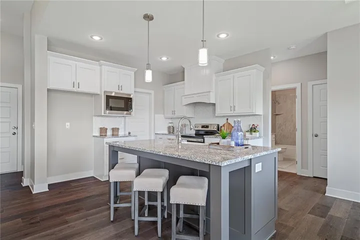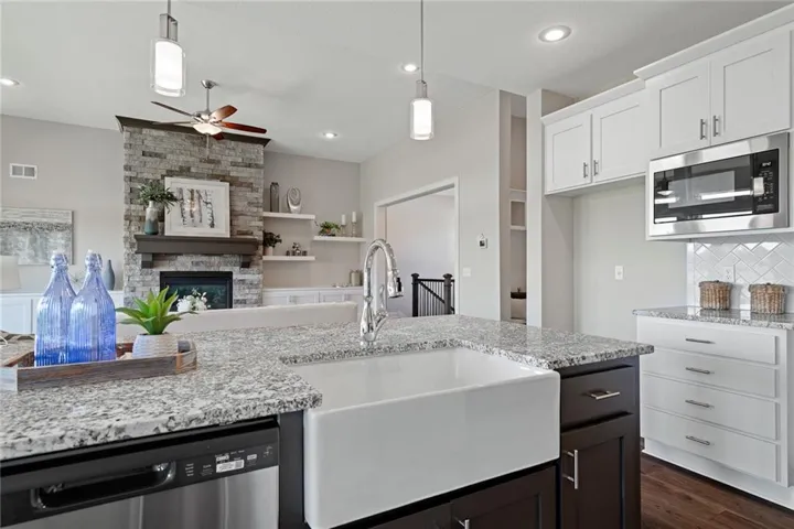 +"PublicRemarks": "Improved floor plan featuring larger master closet. Plus check out this views!! This is one of Prieb Homes most popular reverse 1.5 story plans. The Payton is our only plan that has THREE Bedrooms on the Main Floor and ADDITIONAL bedroom in basement. Basement has full bathroom and HUGE rec room featuring tons of light with full wall of windows looking out to water view! Kitchen has large center island facing living room, soft close kitchen cabinets, apron front sink, recirculating vented hood and GE profile SS appliances. Covered 17x8 deck and large walk out lot with water view. Photos of previously completed home, some features of the home may differ. Tentative completion date April 2025."