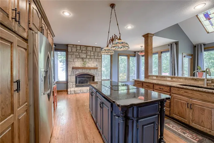 The 4th Bedroom has a bonus room with a sun tunnel, making it the perfect hideaway for a library, office, or children's play space. There are Hardwood Floors on the Main & Bedroom Levels. Take a stairway down to an expansive two-tier lower & get ready to entertain your friends & family. The first tier features a wet bar & space for conversational seating. Also on the 1st tier, you will find a large, 4th Full Bath with a 6-person sauna. Make your way to the lowest tier with plenty of space for game tables, workout equipment, and room to relax, watch a movie, or host a game night. A gorgeous pool table stays with the property. Walk out to a concrete patio—perfectly hidden—to enjoy your privacy, the peaceful lot, & the treed view. Don't forget to check out the large storage room|workshop with double doors to the backyard. The Hills of Monticello is in unincorporated Platte County—pay no Etax. ATT & GOOGLE Fiber are both available. The property feeds to Park Hill School District. Walk to the Elementary & Middle Schools. Great access to Highways & KCI, & ALL amenities along 45 Highway.