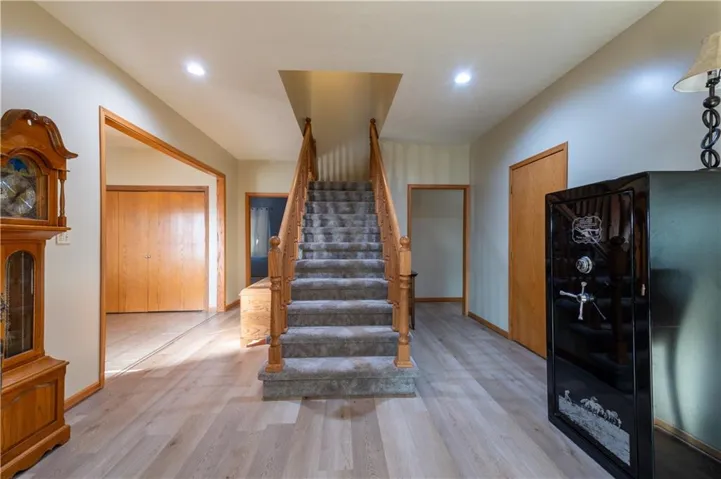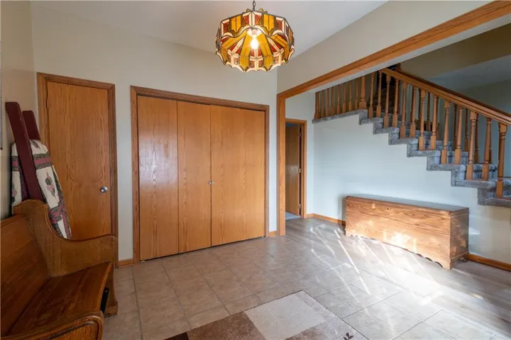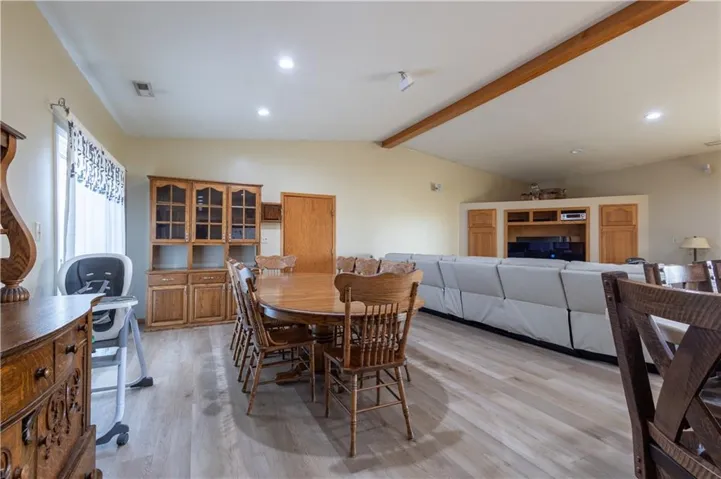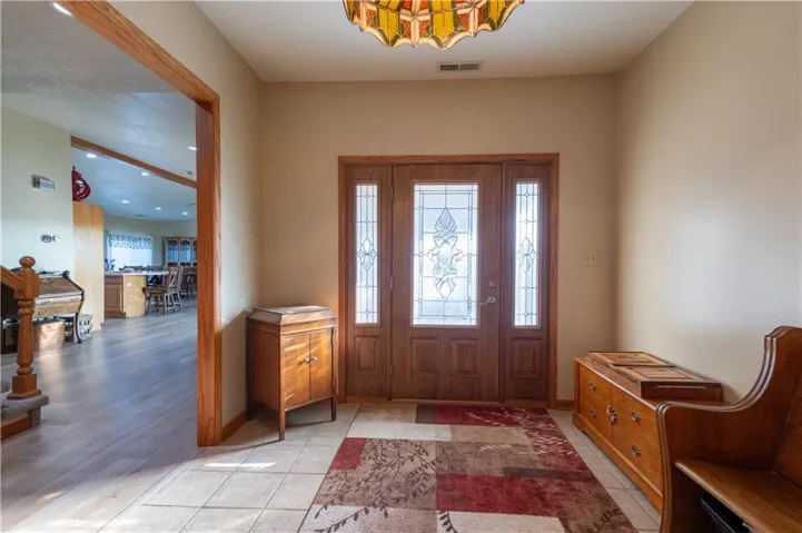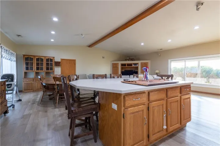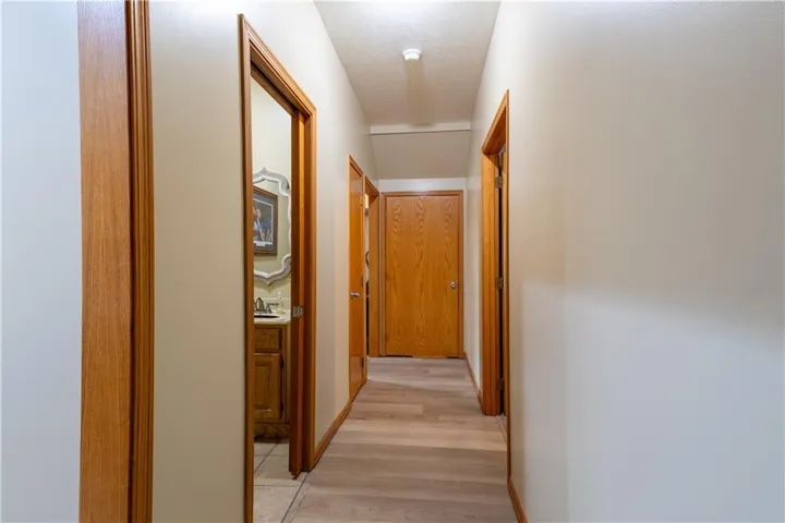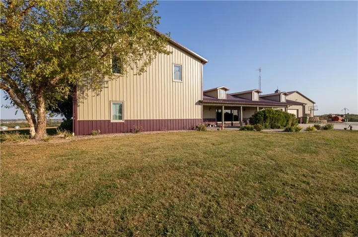 +"PublicRemarks": "Where luxury meets tranquility- your retreat awaits. This beautiful home sits on the hilltop of 32 acres MOL in northern Andrew County overlooking the river bottoms. The house was built in 2005 with 6 bedrooms and 2.5 bathrooms. It's expansive open concept is perfect for enjoying quality time and gatherings. There is a master suite on the main floor with a jacuzzi tub as well as a shower and walk in closet. There is a second bedroom on the main floor and a guest half bath off the hall along with a formal foyer. A walk in pantry & laundry room are on the main floor as well. Upstairs you will find 4 large bedrooms and an updated full bath. The house is traditional 2x6 framed on a slab with radiant floor heat installed in the concrete (very efficient). There is an oversized 2 car garage attached to the house & a large 50x60 shop with concrete floor and electrical. New furnace air handlers, new ecobee smart thermostats, new AC units all in February 2021. Top of the line Anderson windows and sliding glass door were installed October 2022. New overhead garage doors in February 2024. Luxury vinyl plank flooring laid in December 2020, new carpet May of 2024. Fresh paint throughout most of the house in March 2024. New circuit board and heating elements to radiant floor heat system in September 2022. New water softener in June 2023. The deer are plentiful on the land (some caught in pictures) and the turkeys are abundant. There are currently 18 acres in row crop production providing for some income if desired. With so much new, all that’s left to do is move in & enjoy your forever property!"