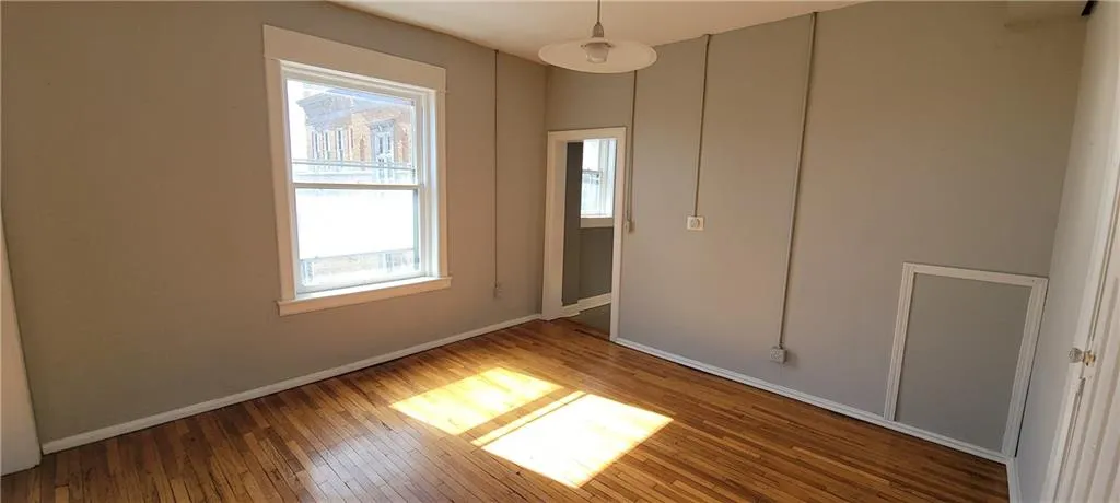 Welcome home to the Westside - KCMO. In this upper level unit of this Historic Brick Duplex you enjoy a covered front porch, easy access out the kitchen to the backyard which features an authentic modern brick pizza oven. Spacious 3 bedroom / 1 bath with spacious kitchen, pantry area, living room and dining room. The high ceilings, hardwood floors throughout and many large windows on the East & South sides of this building provide lots of natural light in your living spaces. Shared basement storage with each tenant having their own washer and dryer hookup. Don't forget KCMO offers FREE curbside recycling, trash & bulky pick-up service. Always plenty of parking out front and Fantastic view of KC skyline. Spacious unit of 1300 square feet!\r\n