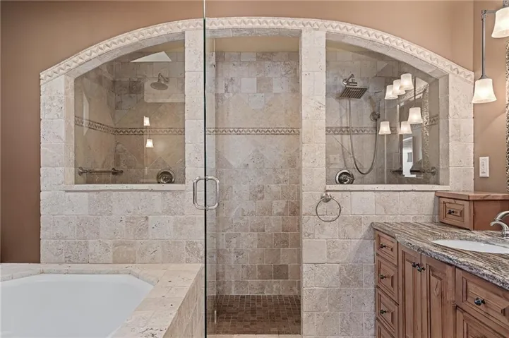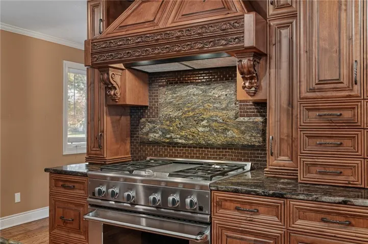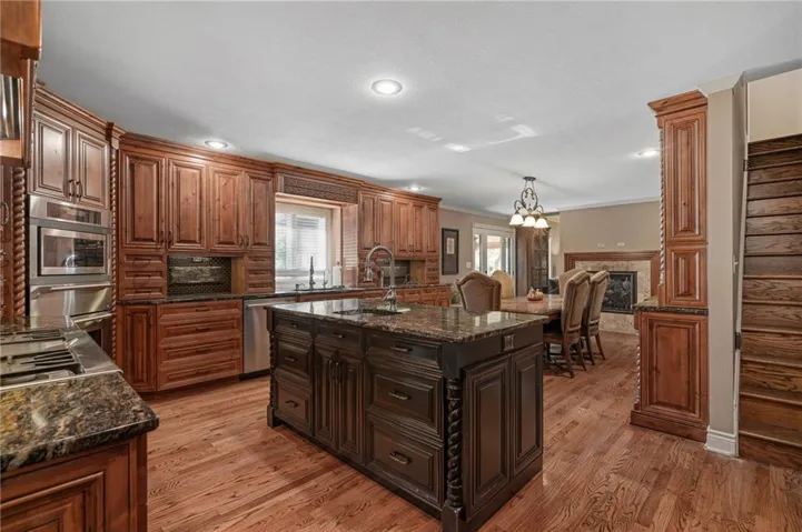 +"PublicRemarks": "EXQUISITE home in the heart of Leawood with your perfect summer POOL! Enjoy the Blue Valley school district, with Leawood Elementary and Middle Schools being less than 1 mile away. You're going to fall in love with the luxury of this 4 bedroom, 4½ bath, 3 car garage EXPANSIVE home with more than 5,000 sqft. Your primary suite is conveniently on the main floor and is a true retreat--with a double walk-in shower, jetted tub, and grand walk-in closet. You'll find the 3 additional bedrooms on the second floor, all with walk-in closets. The CUSTOM kitchen is a dream with its large island, gas stove, double oven, and oversized fridge. The living room is perfect for entertaining with a wet bar, gas fireplace, and gorgeous hardwood floors. Your private office/library with built-in shelving and large laundry room complete the main floor. In the lower level, you'll find an ENORMOUS family room with wet-bar, gas fireplace, and walk-up access to the pool. And don't miss the 2 ADDITIONAL non-conforming rooms (extra bedrooms/rec room/home gym) and plenty of storage space. Your perfect summer POOL waits for you outside, right next to the spacious covered patio. Make this dream home YOURS!"