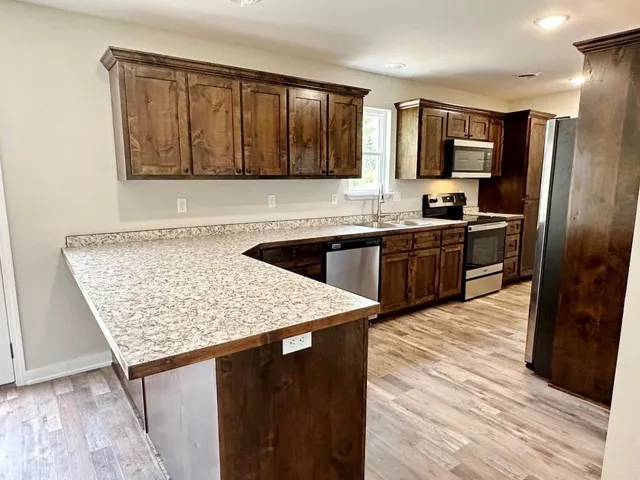 Nestled on a quiet street on the southeast corner of El Dorado Springs is a brand-new home that is under construction! This home will feature 2,048 finished square feet in the 2-level floor plan. The main level will consist of a nice sized living room, the kitchen, the master bedroom, a full bathroom and the utility room. The high-end kitchen features custom cabinets with granite countertops including a breakfast bar, soft close doors & drawers, lazy Susan, and pantry. The second level of the home features a second living room, 3 guest bedrooms, and the second bathroom. In addition to this excellent living space, the home features a 1-car attached garage on the south side of the home as well as a deck out back. Estimated completion date is February 2025. An offer accepted soon will allow the buyer to customize interior colors of flooring, wall, cabinet finishes, and countertops as construction process allows. Don’t miss your opportunity to own a NEW HOME in El Dorado Springs, MO! Call soon!