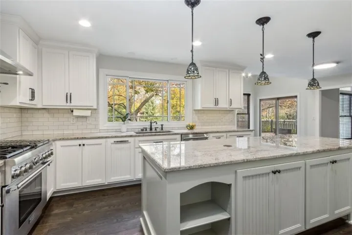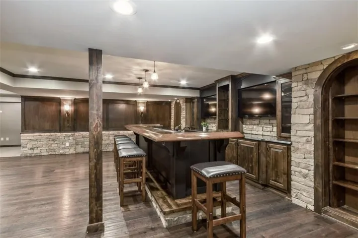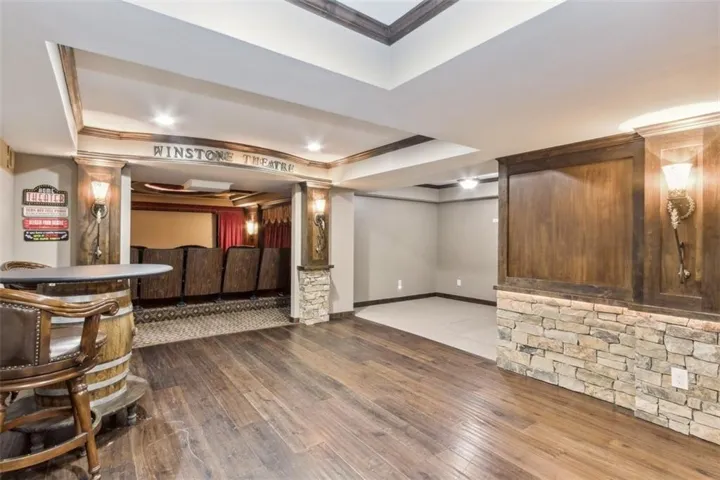+"PublicRemarks": "One of a Kind Home awaits! So much luxury here with a surprise in every room! Luxurious space for everyone here! Hardwood floors in Main floor living area with updated paint colors. Granite adorns every counter top in the home! Amazing kitchen with Thermador range, pot filler, Extra long island with power for keeping meals warm to serve! Updated laundry room with exit to amazing deck and outdoor living areas. Composite decking expands the length of the home with serving window over the kitchen sink for entertaining ease! Breakfast Room could be a sunroom or eating spot. 5th Bedroom on the main floor with private bath is perfect for guests or long term visitors! Enjoy the fireplace and new carpet/paint in the Primary bedroom. Huge Walk in closet, too! All 3 bedrooms spacious bedrooms upstairs have bathroom access and 2 enjoy walk in closets! The Loft with built-ins is another bonus! You will be the envy of all with your own restaurant type bar in the lower level! 14' bar with multiple TV's, fridge, sink and beautiful custom cabinets. There are 2 workout spaces or sitting spots. The media room is a classic place to watch sports or movies all year long! Movie seating and new projector convey with the home. Outside, you have your own fenced and private oasis with beautiful perennials to love next year. With no HOA, you can enjoy the darling shed and grill to your heart's content in the nook off of the kitchen! Amazing location with access to all services close by, short walk to Middle and Senior High Olathe schools. Elementary is 1 mile away! This gem is ready for you to enjoy the holidays here!"
