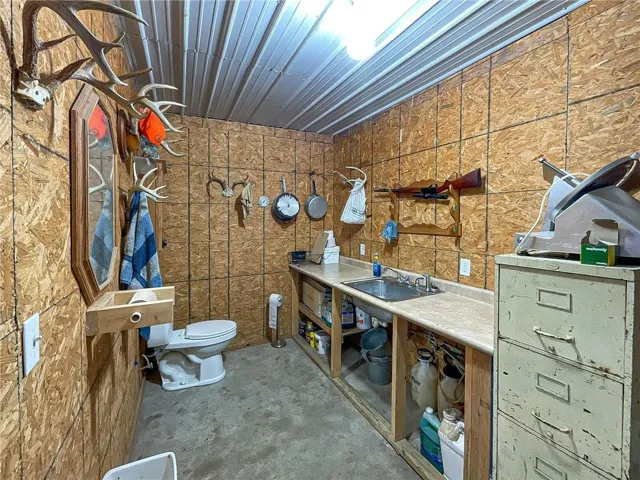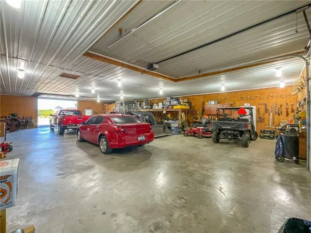 40'x60' detached shop with two, 10' tall garage doors, lights, electrical outlets, shelving, half bath and 16'x60' lean to.\r\n