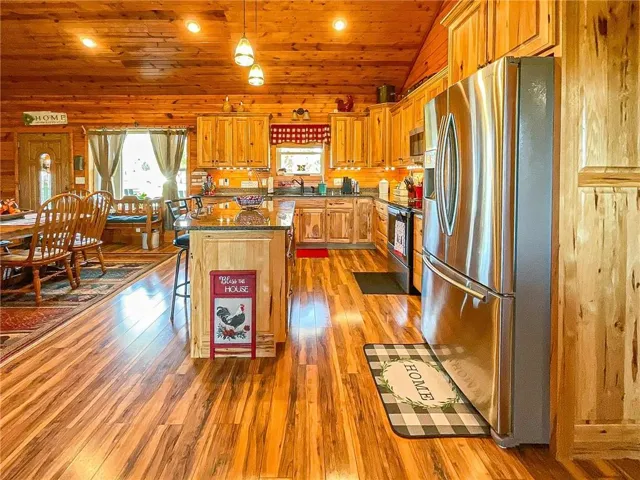 Home offers a covered porch and a 24'x29' Great room with open concept living area. 14' cathedral ceilings covered with tongue and groove hardwood finishes. \r\n